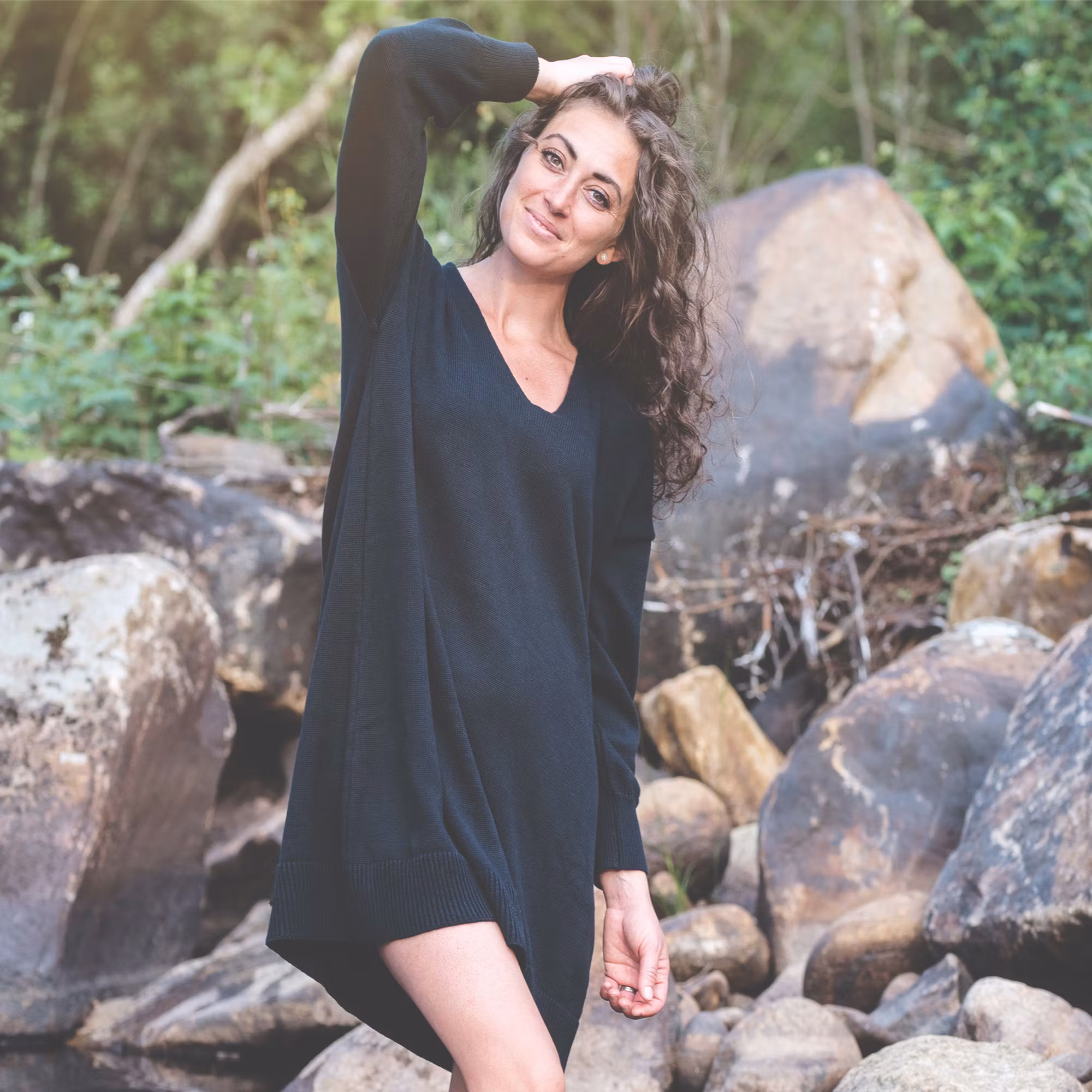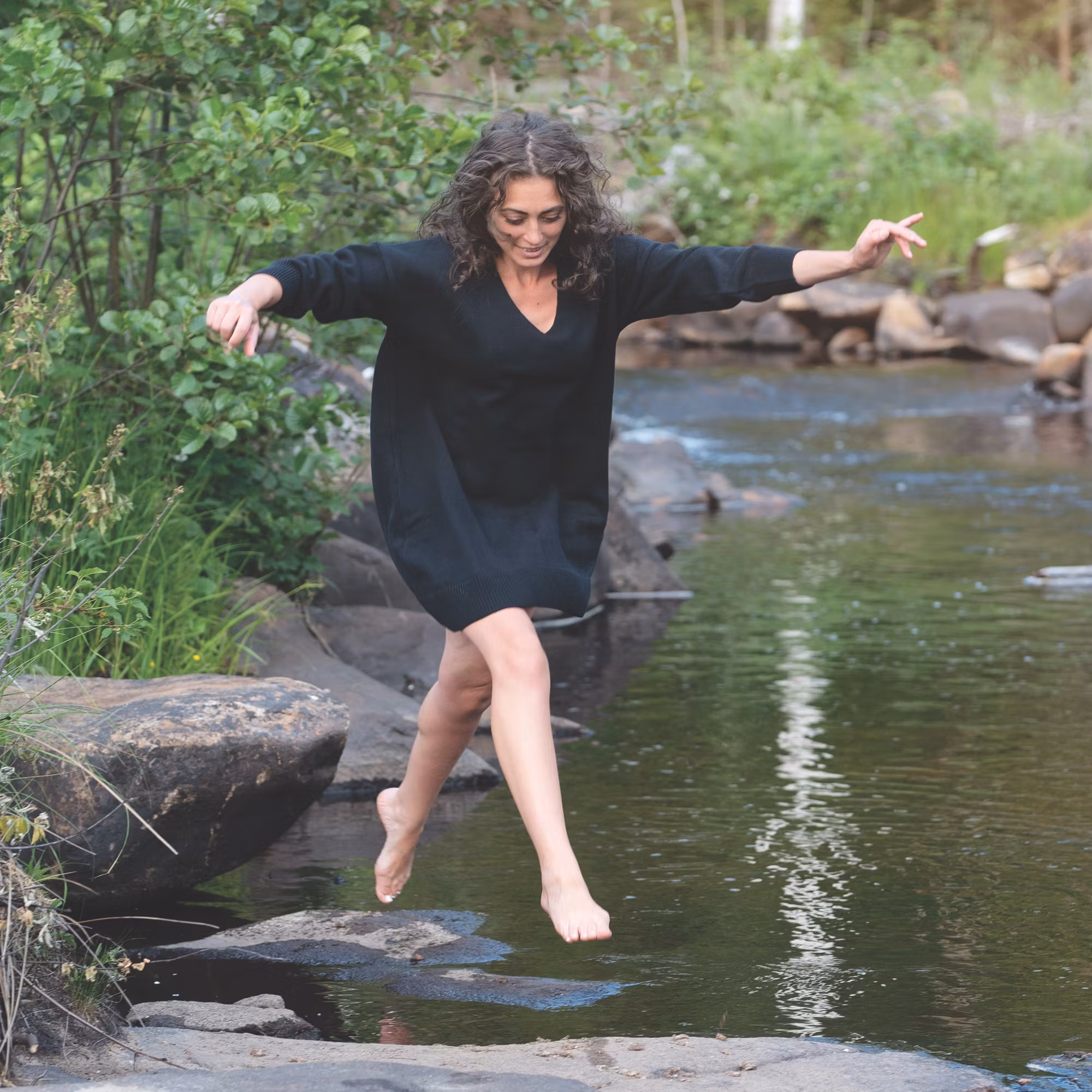 Minimalistic and feminine dress in the most luxurious of all beautiful materials, here in black. The model is loose and spacious and suits many personalities. Wear me everyday and dress up with nice details for a party.